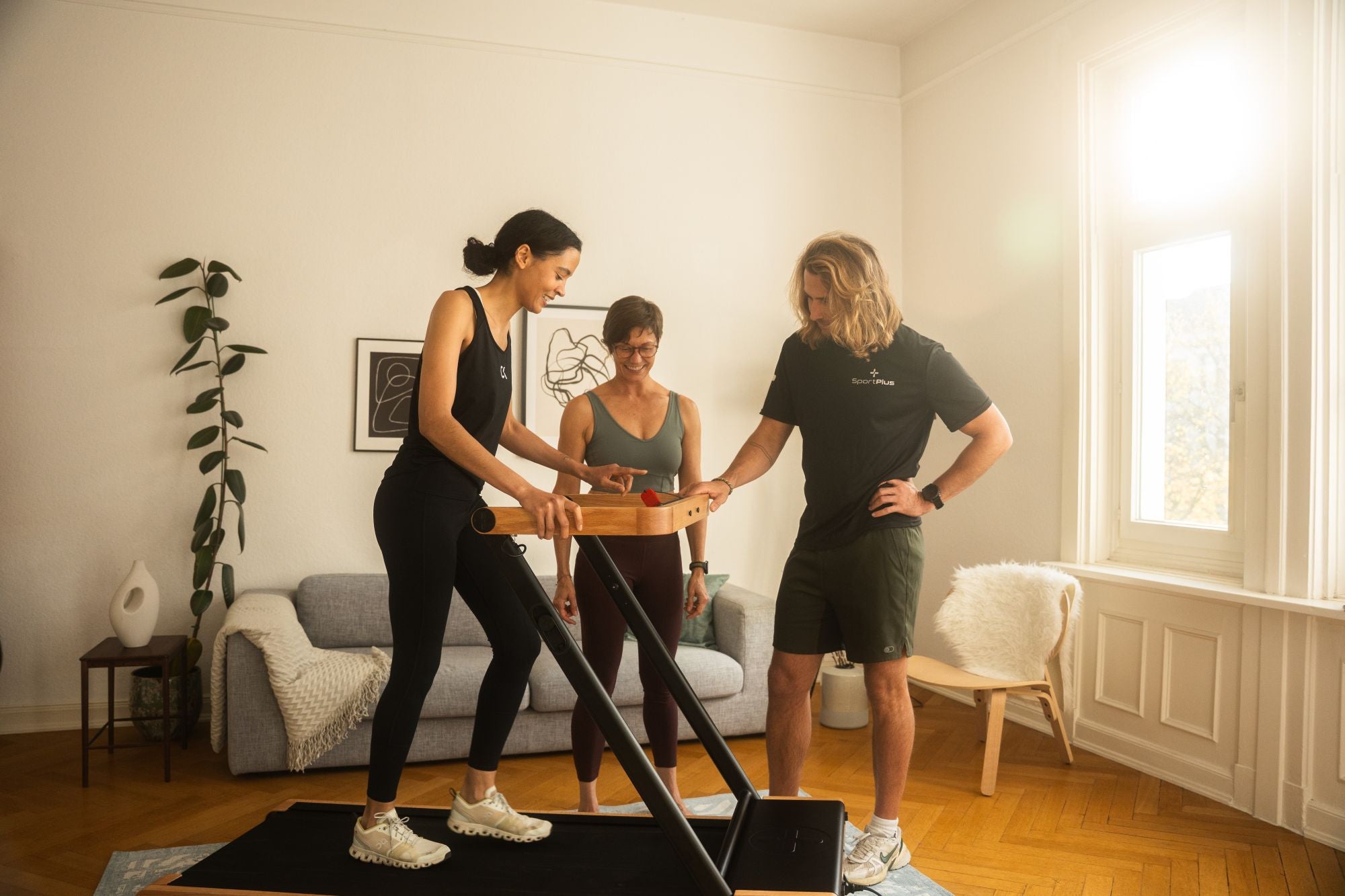 - Reinigung: Wische Staub und Schweiß regelmäßig ab, um Holz und Laufgurt zu schützen.